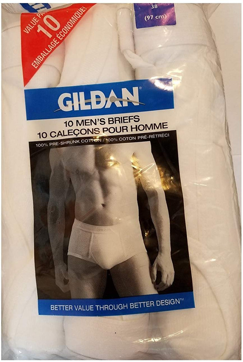Gildan Mens Value 10-Pack 100% Cotton White Briefs Underwear Comfortable