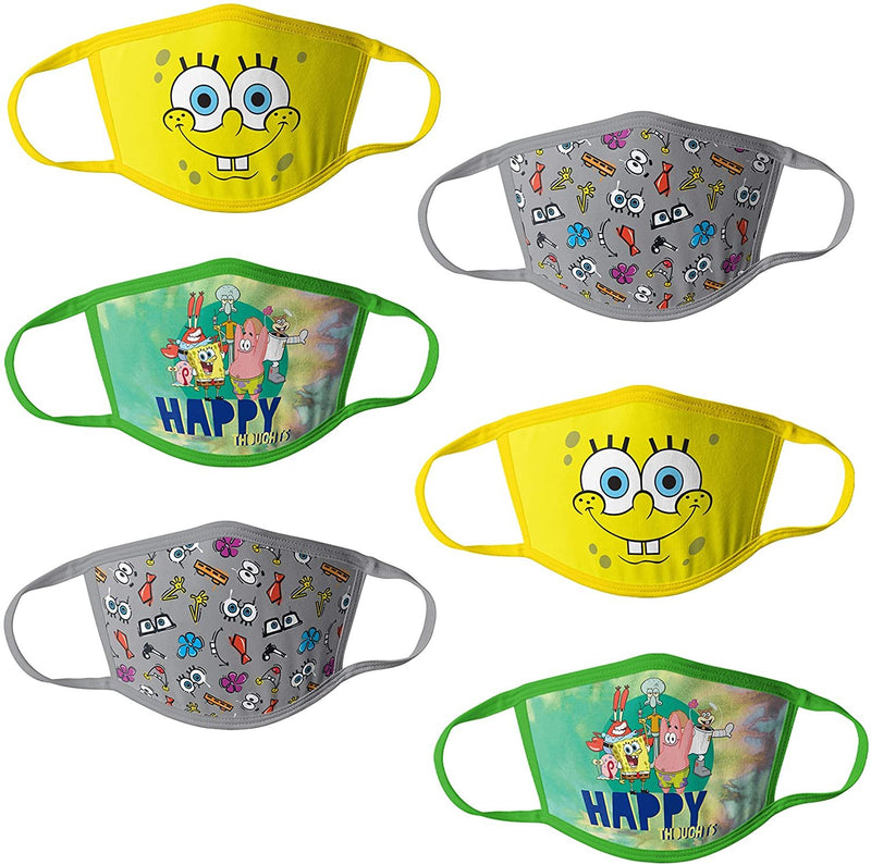 SpongeBob Squarepants Kids' Reusable Mask Multipack, AdultSpongebob6, OSFA