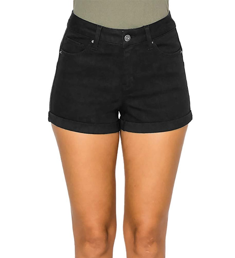 WAX JEAN Butt I Love You Repreve High Waisted Sustainable Denim Shorts, Black, Small