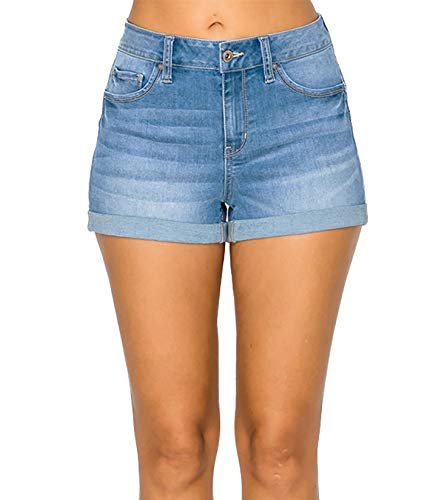 Wax Women's Juniors Mid-Rise Denim Shorts