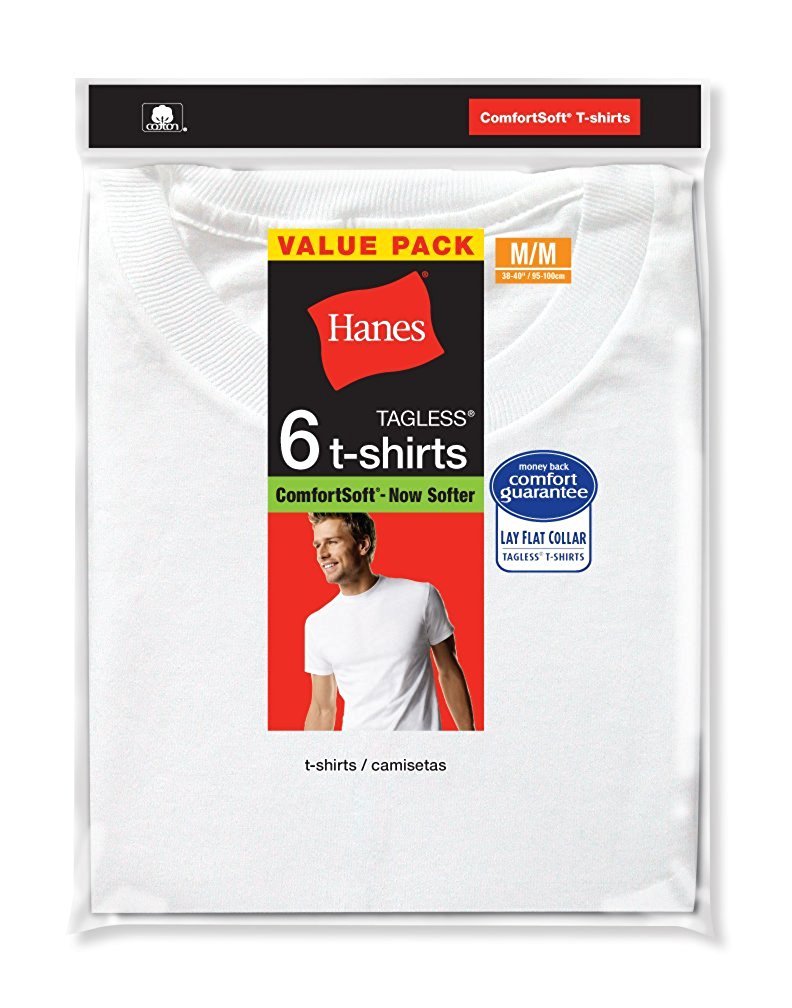 Hanes Classic Mens White Crew Neck T-Shirt P6_White