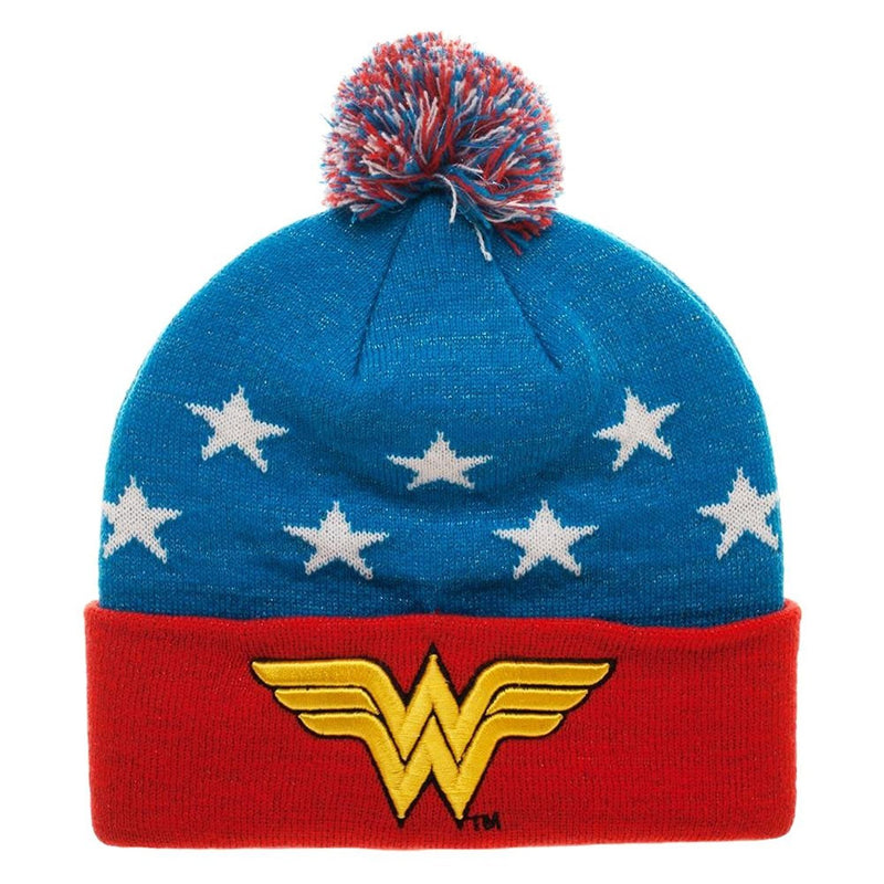 Wonder Woman Embroidered Winter Pom Beanie , Blue , One Size