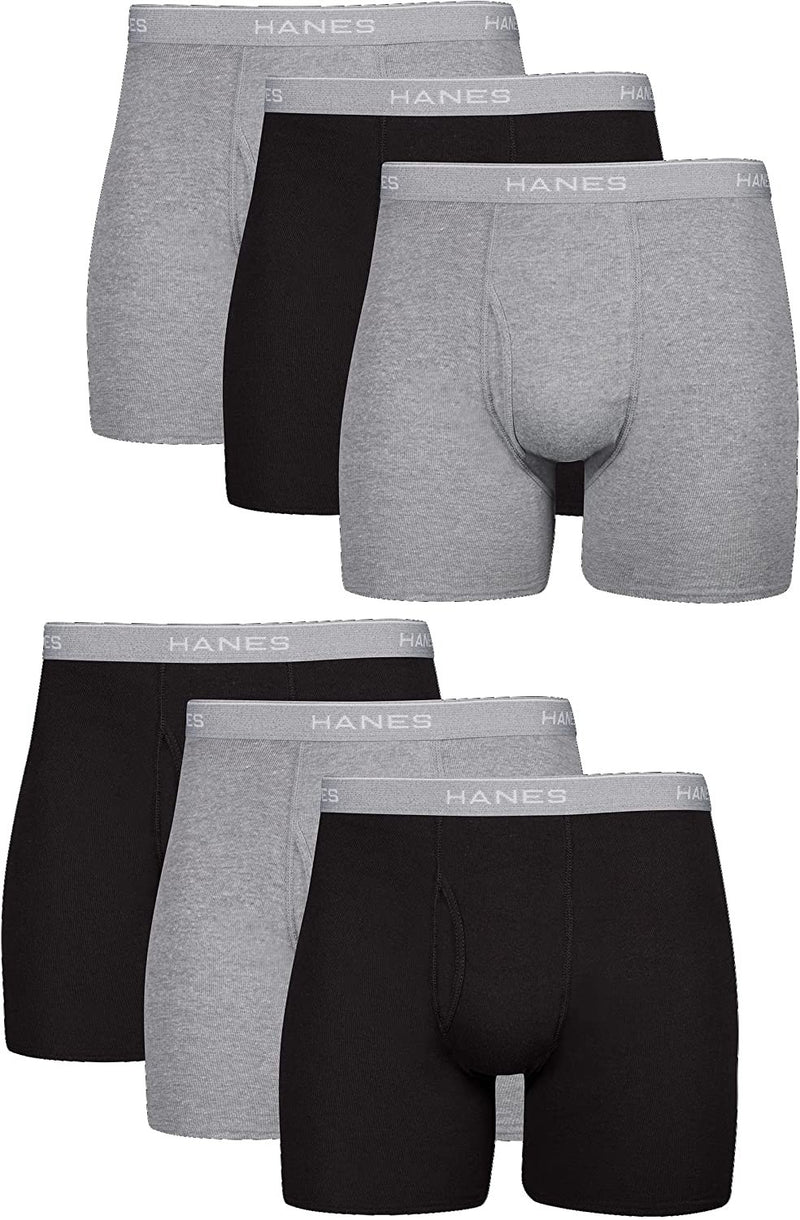 6 Pack - Black/Gray Hanes Men's Tagless Cool Dri Boxer Briefs with ComfortFlex Waistband-Multiple Packs Available