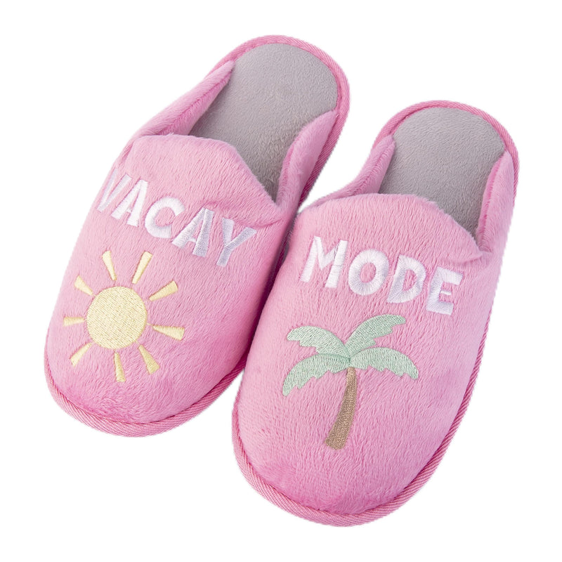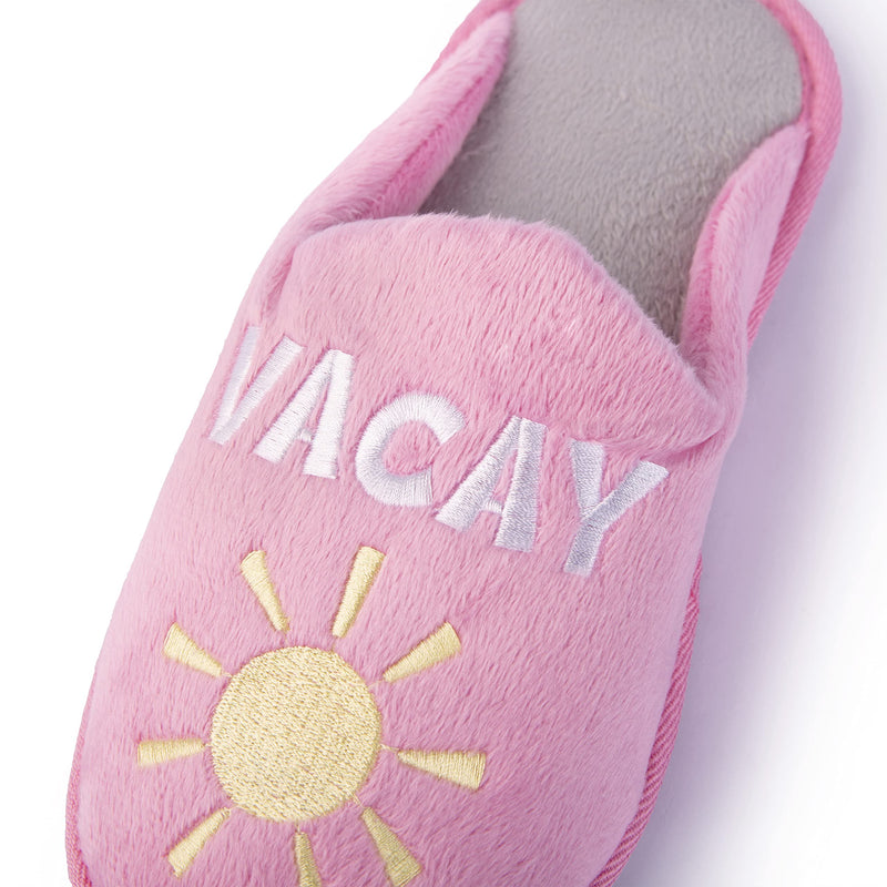 Handcraft Staycation NYC Ladies Funny Quote Scuff Slipper, Plush Non Slip House Slippers for Women, Comfy Soft Sole Bedroom Shoes