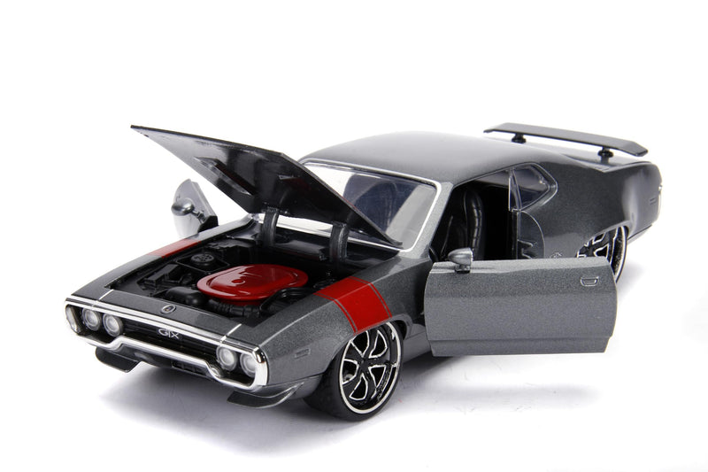 Jada 1972 Plymouth GTX 440 Metallic Gray with Red Stripe Bigtime Muscle 1/24 Diecast Model Car