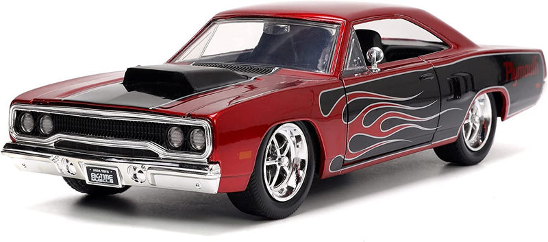 Jada Toys Big Time Muscle 1:24 1970 Plymouth Road Runner Die-cast Car Red/Black Flames, Toys for Kids and Adults