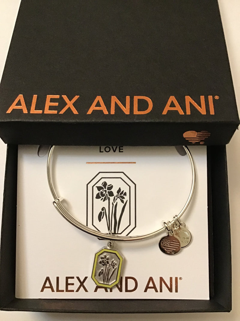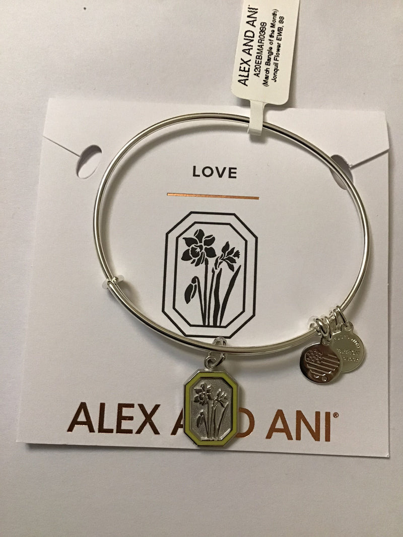 Alex and Ani (March Bangle of The Month) Jonquil Flower EWB, Shiny Silver, One Size