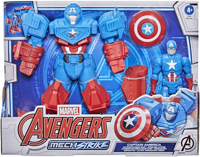 Avengers Marvel Mech Strike 8-inch Super Hero Action Figure Toy Ultimate Mech Suit Captain America, for Kids Ages 4 and Up