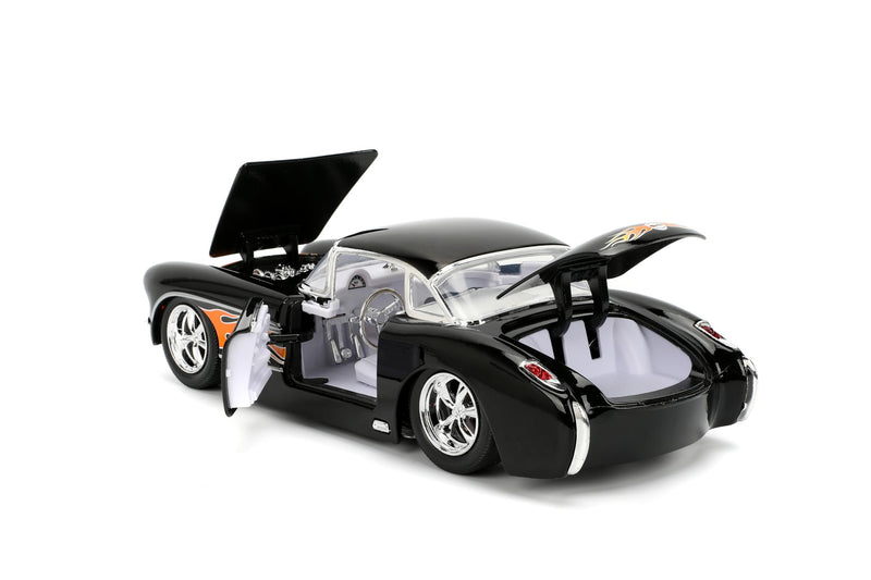 Jada Toys Bigtime Muscle 1:24 1957 Chevy Corvette Die-cast Car – Opening Doors, Hood, Trunk, Rubber Tires(Glossy Black Flames)