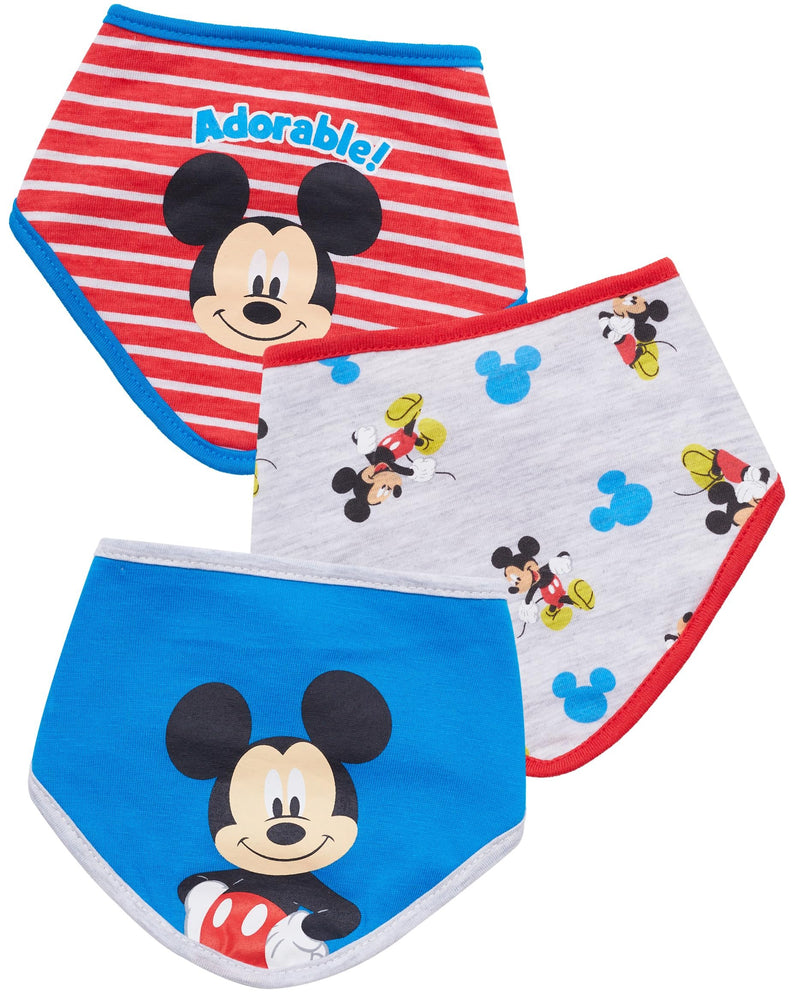 Disney Baby Unisex Mickey Mouse Bandana Bib 3-Pack - Mickey Mouse Baby Bibs (Blue/Red/Grey, 0-12M)