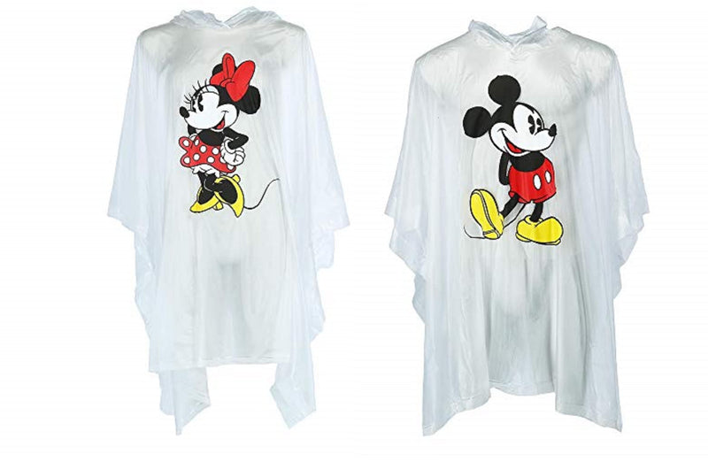 Disney Classic Mickey and Minnie Rain Poncho 2 pack set, Clear Adult