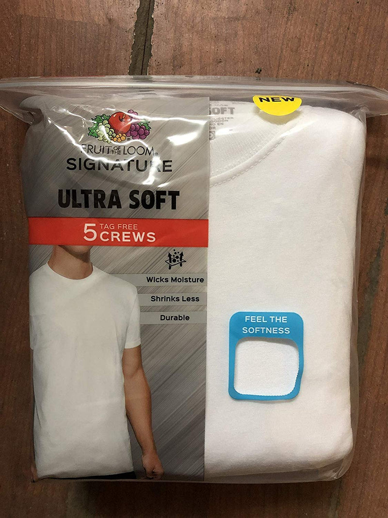 Fruit of the Loom Men's 5-Pack White Crewneck Tees Tagless Ultrasoft Signature