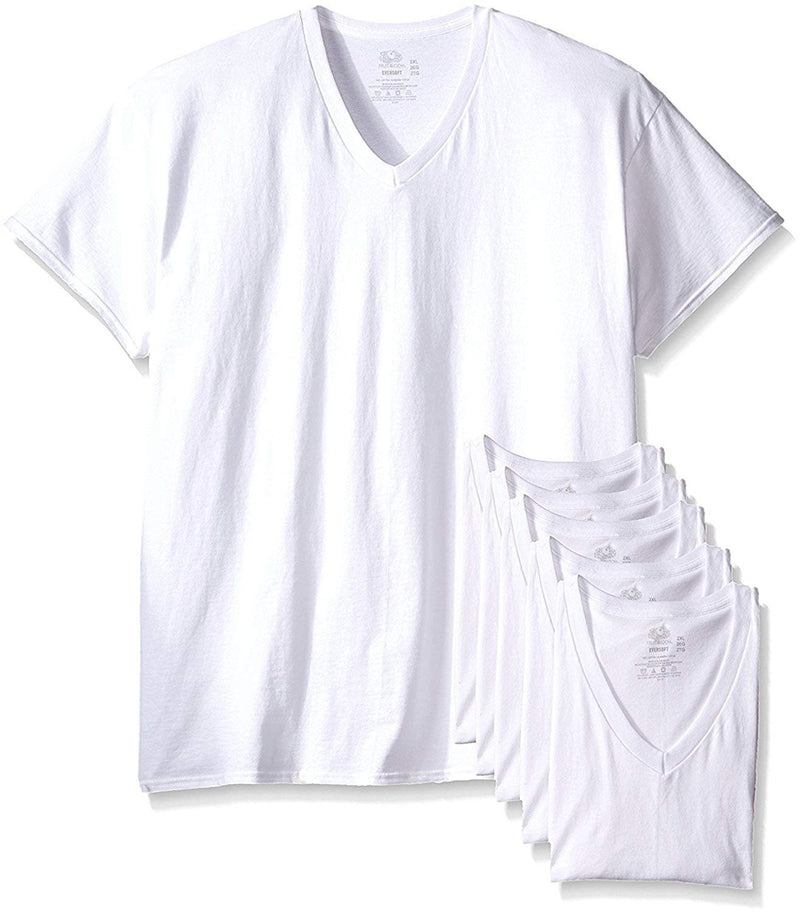 Fruit of the Loom Men's 6-Pack Stay-Tucked V-Neck T-Shirt (White, Large / 42" - 44" Chest)
