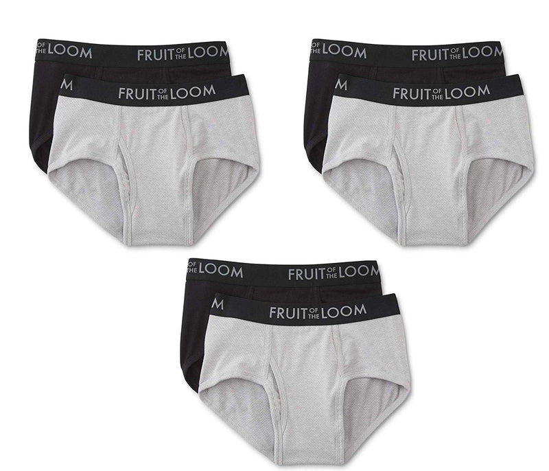 Fruit of the Loom Men's 6-Pack Briefs Breathable Micro Mesh Black/Gray Cotton/Polyester/Spandex Blend