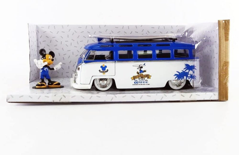 Jada Toys Disney Mickey and Friends 1:24 Volkswagen T1 Bus Die-cast Car w/ 2.75" Mickey Mouse Figure, Toys for Kids and Adults