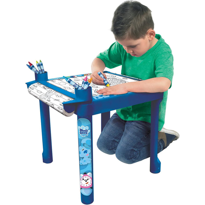 Nickelodeon Coloring Art Paper Roll with Plastic Desk Holder, Crayons & Stickers - Color & Craft Art Table - Activity Floor Desk, Ages 3-6