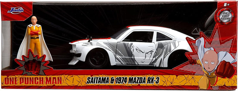 One Punch Man 1:24 1974 Mazda RX-3 Die-cast Car & 2.75" Saitama Figure, Toys for Kids and Adults