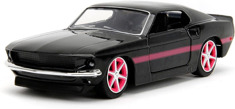 Pink Slips 1:32 W2 1969 Ford Mustang Die-Cast Car, Toys for Kids and Adults (Black/Pink Stripes)