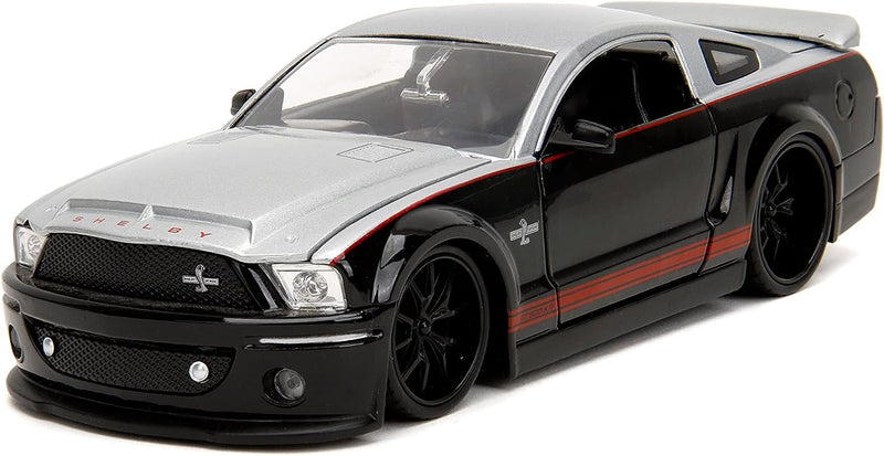 Big Time Muscle 1:24 2008 Ford Shelby GT-500KR Die-Cast Car, Toys for Kids and Adults(Black/Silver)