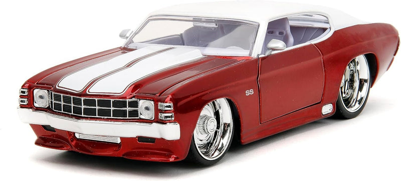 Big Time Muscle 1:24 1971 Chevy Chevelle Die-Cast Car, Toys for Kids and Adults(Red/White)