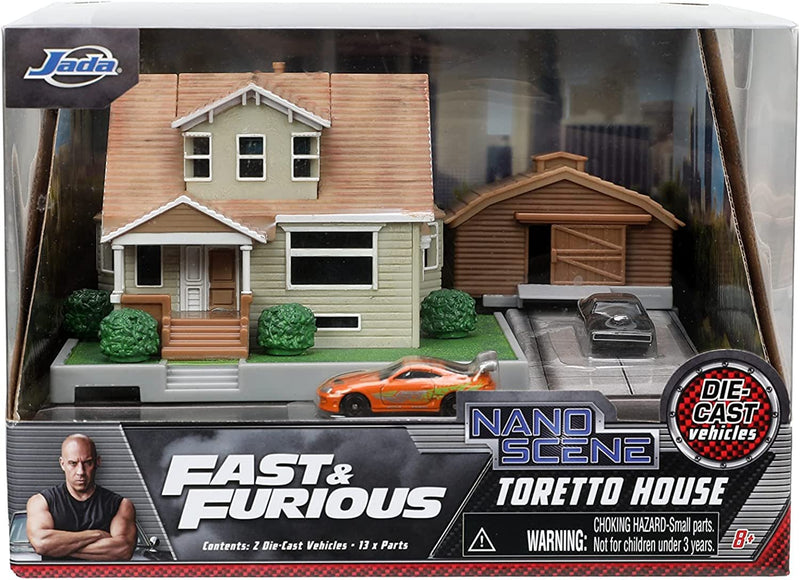 Jada Toys Fast & Furious Nano Hollywood Rides Dom Toretto's House Display Diorama with Two 1.65" Die-cast Cars, Toys for Kids and Adults (33668)