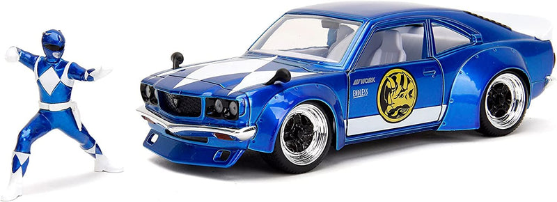 Power Ranges 1:24 1974 Mazda RX-3 Die-Cast Car & 2.75" Blue Ranger Figure, Toys for Kids and Adults
