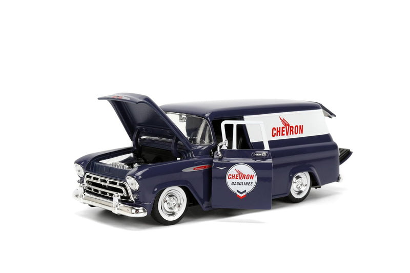 Jada Toys Just Trucks 1:24 1957 Chevy Suburban Chevron Die-cast Car & Gas Pump – Opening Doors, Hood, Trunk, Rubber Tires(Purple)