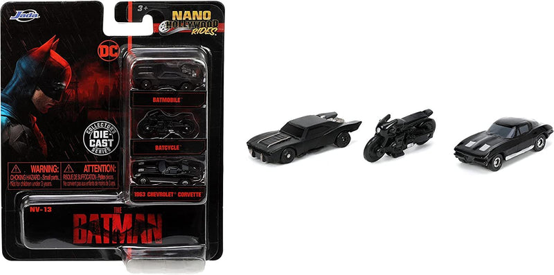 Jada Toys The Batman 1.65" Scale Nano Hollywood Rides: Batmobile, Batcycle, Chevy Corvette Die-Cast Vehicles (32043)