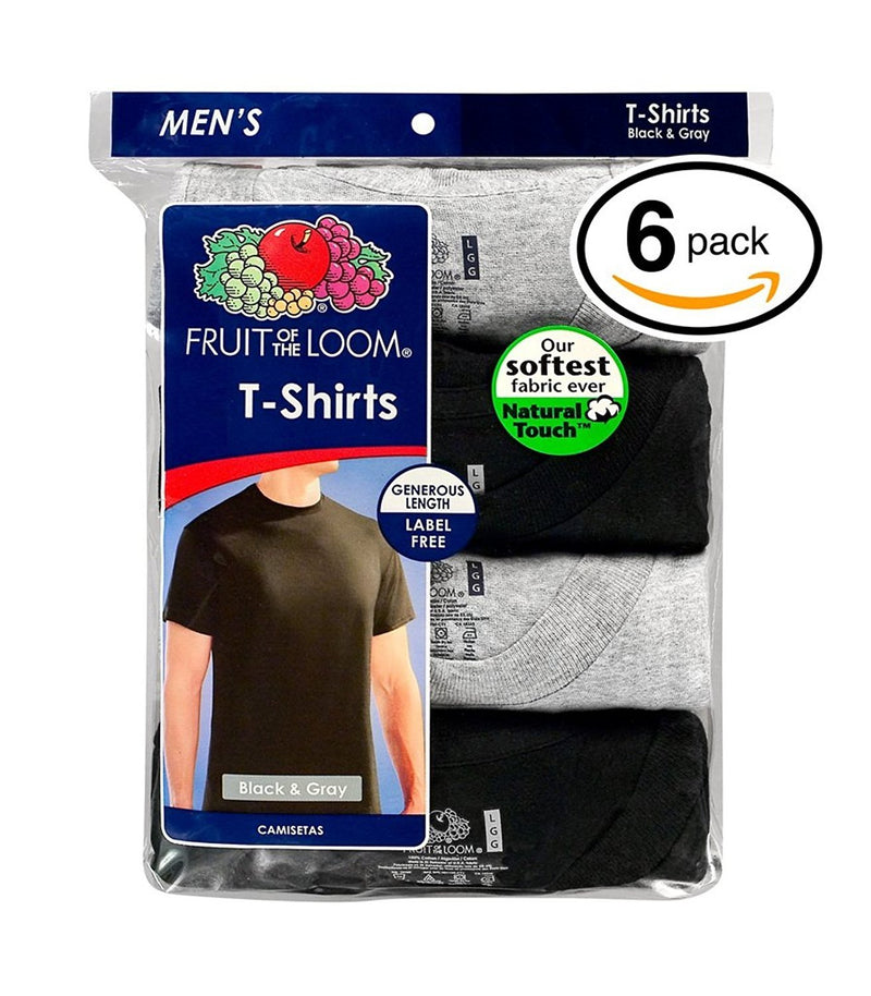Fruit of the Loom Men's Stay Tucked Crew T-Shirt - X-Large Tall / 46-48 Chest - Black & Grey Stay Tucked (Pack of 6)