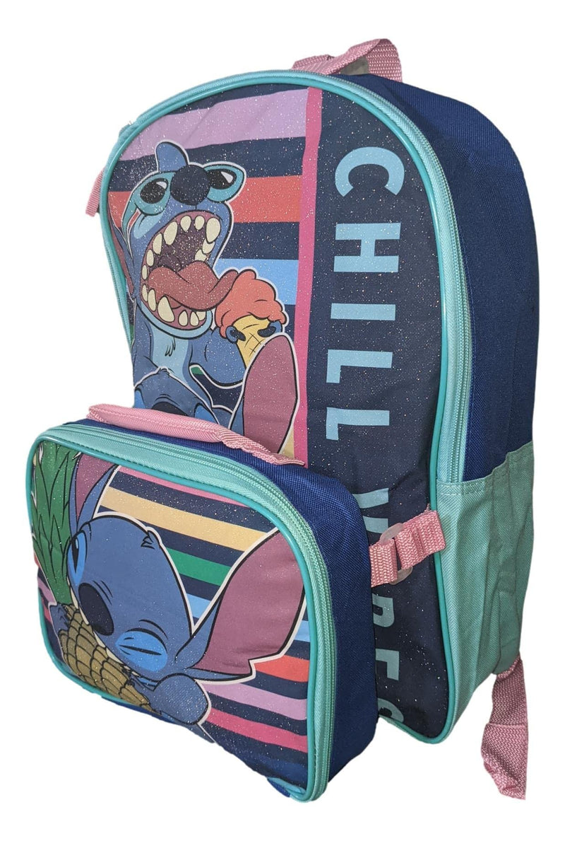 Disney Stitch 16 Inch School Backpack With Removable Lunch Box Set (Lilo & Stitch)