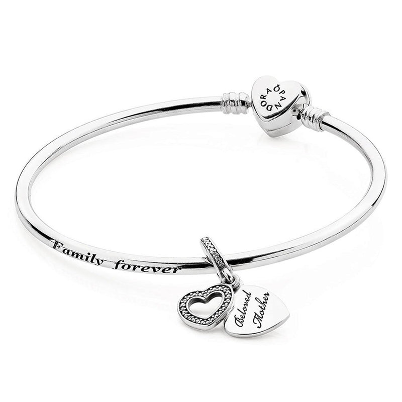 PANDORA A Mother's Love Bangle Bracelet Gift Set Silver With Charm Size 6.7"(17)