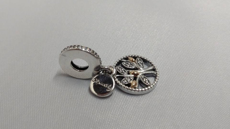 Pandora Family Heritage Dangle Family Tree 14K Gold Sterling CZ Genuine Designer Bracelet Charm