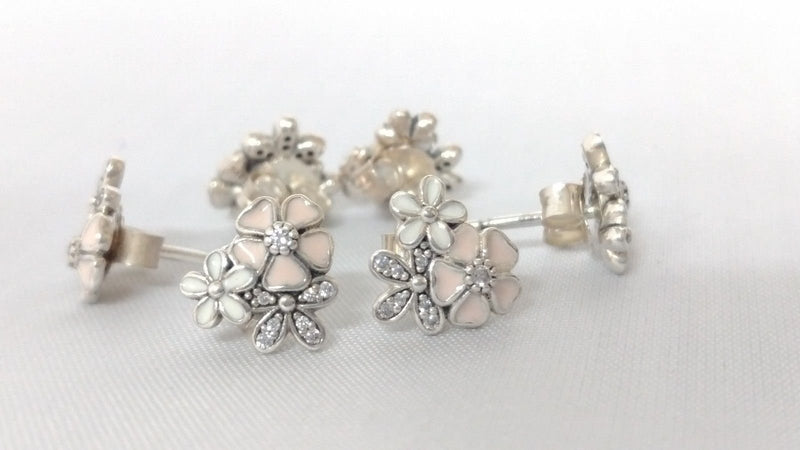 PANDORA POETIC BLOOMS Sterling Silver Earrings Mixed Enamels & CZ 290686ENMX