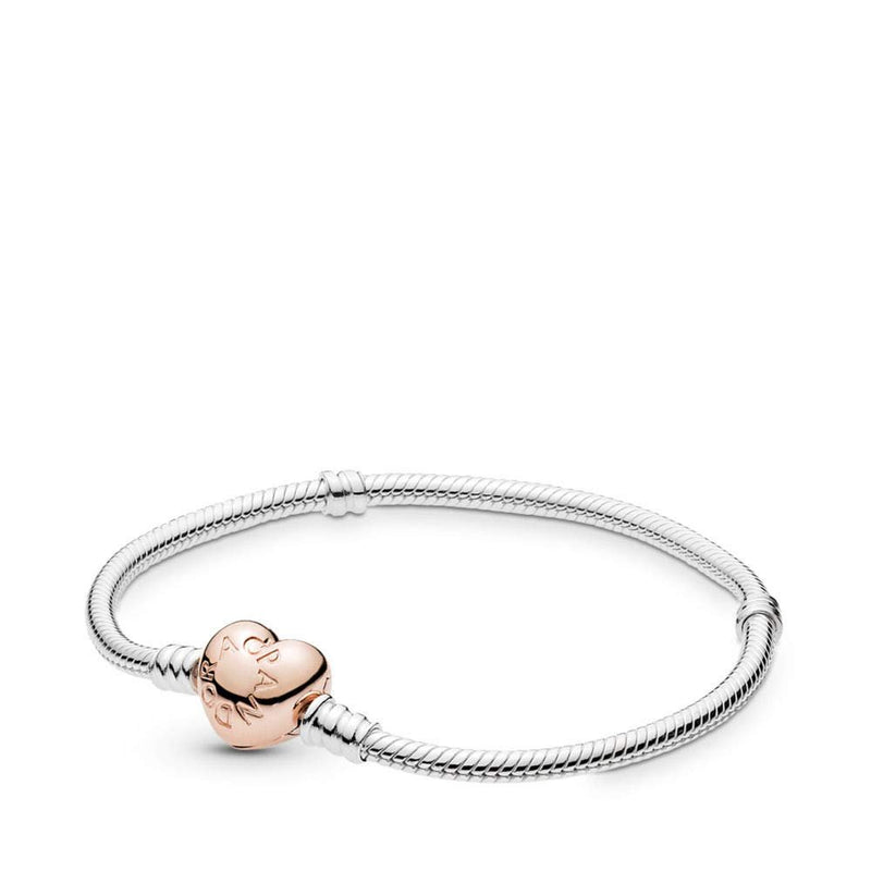 Pandora Sterling Silver Bracelet Rose Heart Clasp, 7.1 in