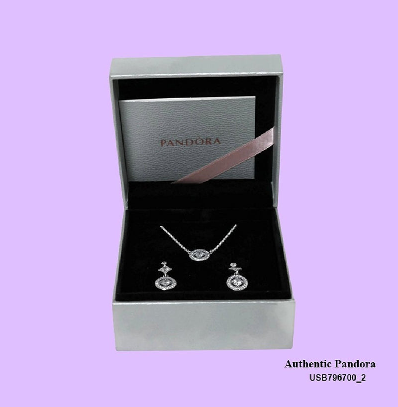Pandora Vintage Allure Jewelry Gift Set, Necklace and Earrings, Clear CZ, 17.7 in, USB796700