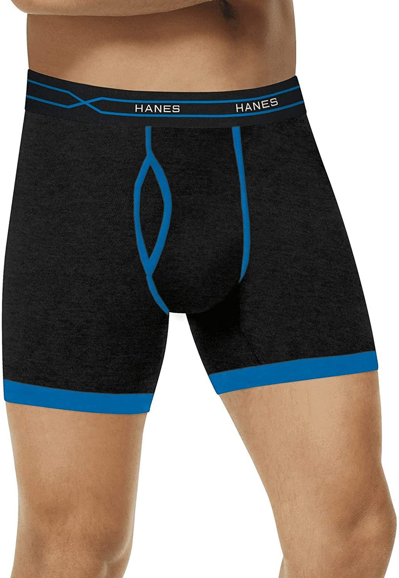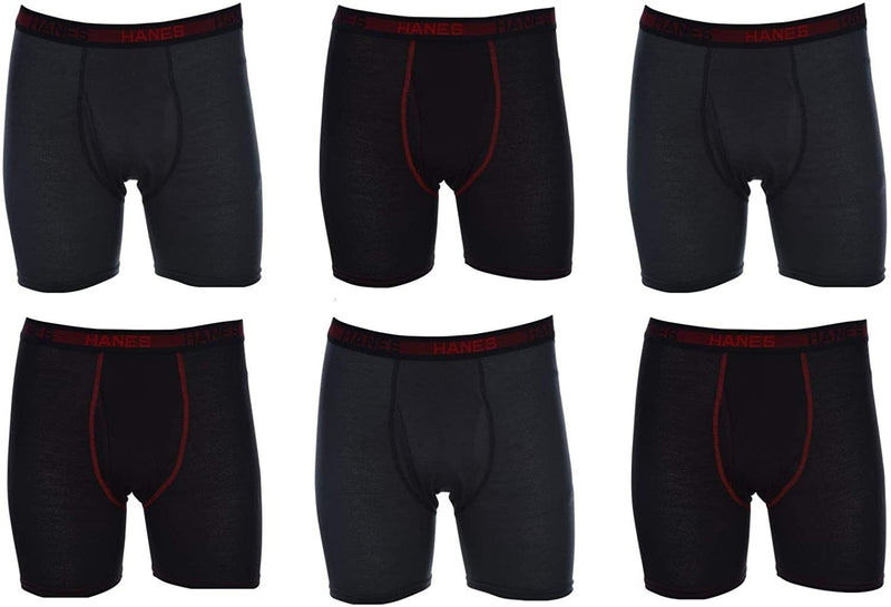6 Pack - Black/Gray Hanes Men's Tagless Cool Dri Boxer Briefs with ComfortFlex Waistband-Multiple Packs Available