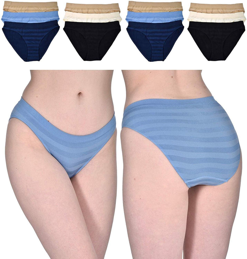 Elle Women's Seamless Bikinis Panties - 12-Pack Premium Quality Shadow Stripe Nylon/Spandex